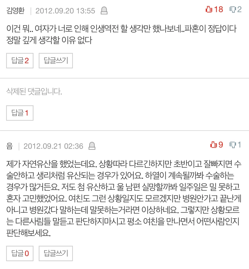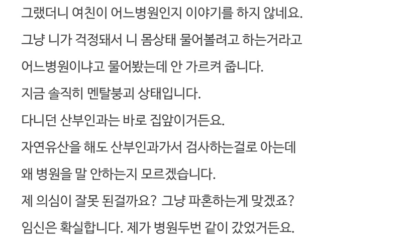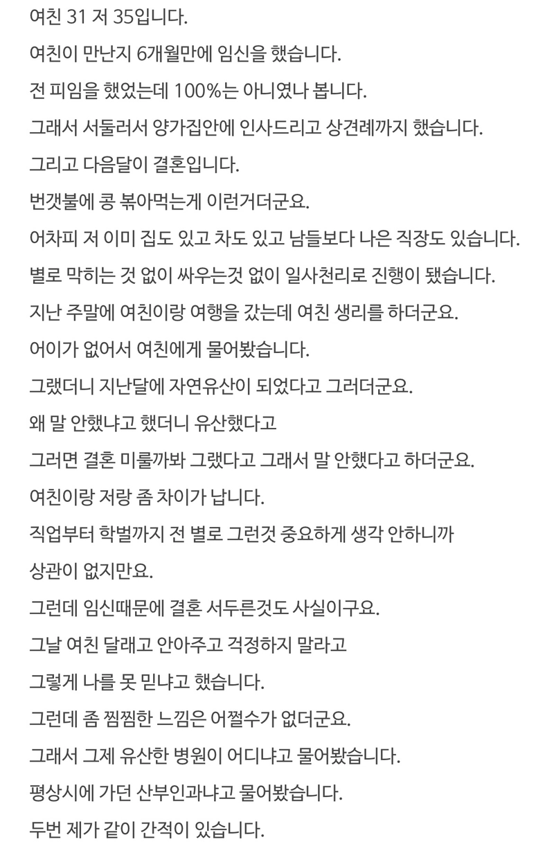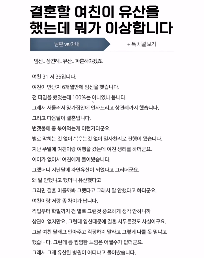 결혼할 여친이 유산했는데 뭐가 이상합니다